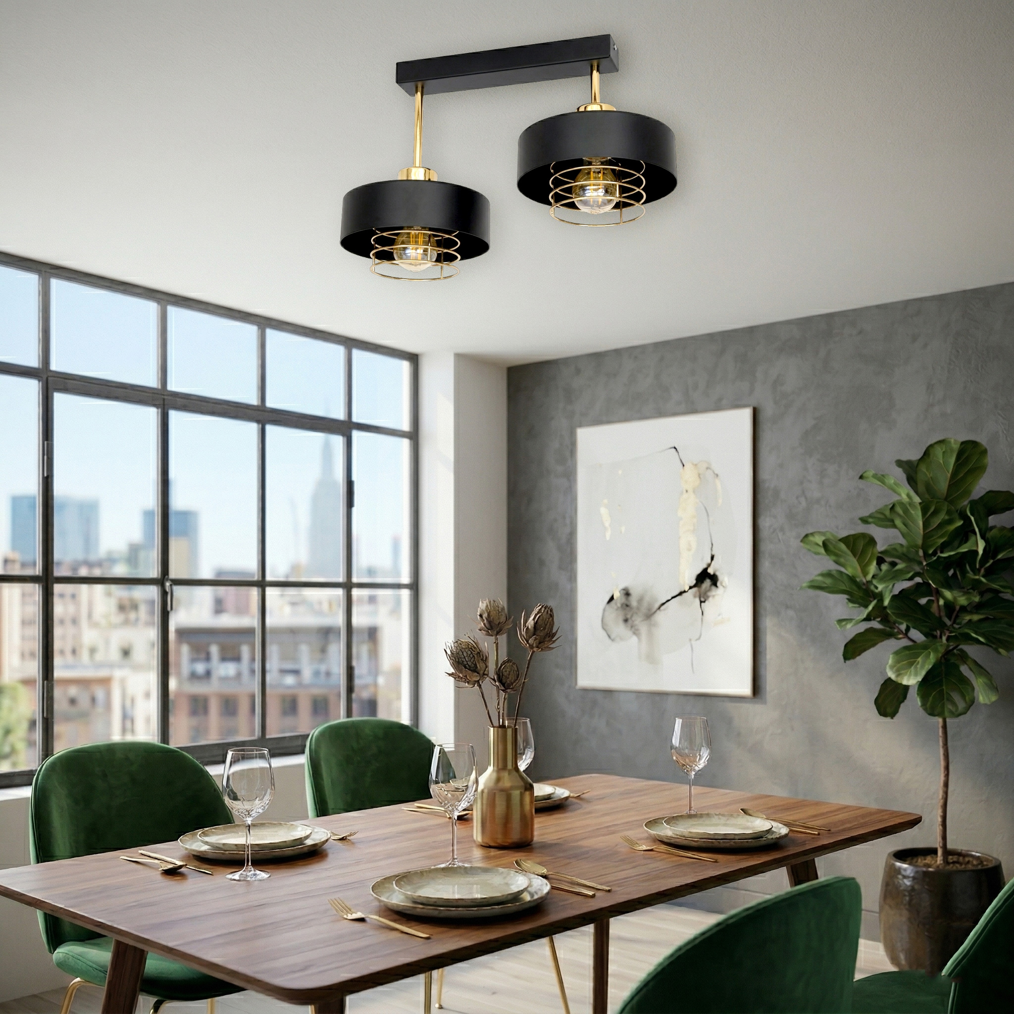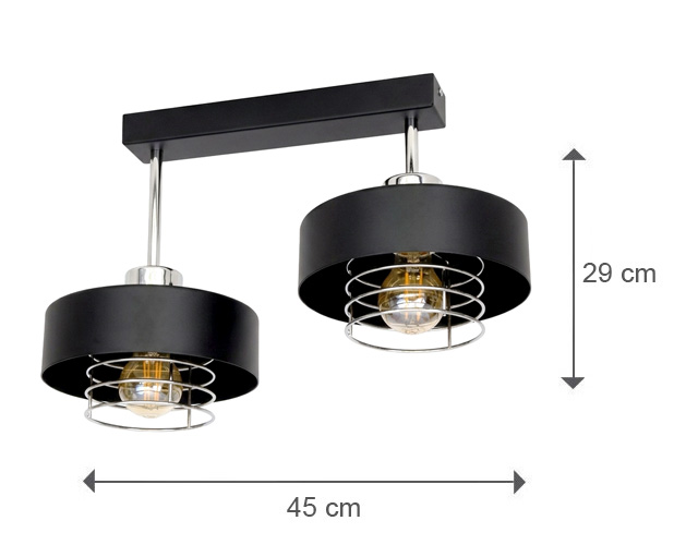 Czarna lampa listwa 2xE27 metalowa | Złoto/Srebro | Lampa sufitowa do sypialni i salonu | Polska produkcja