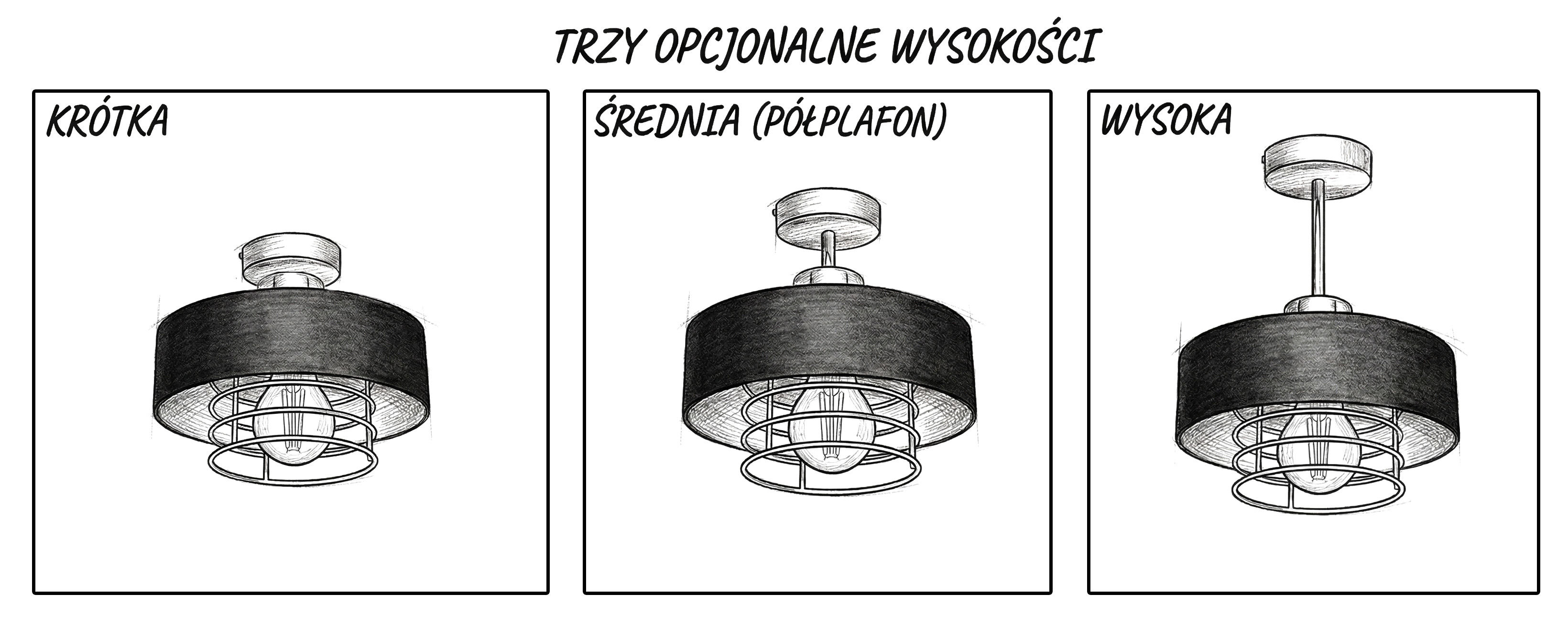 Czarny plafon 1-punktowy – trzy wysokości, jedno wyjątkowe oświetlenie